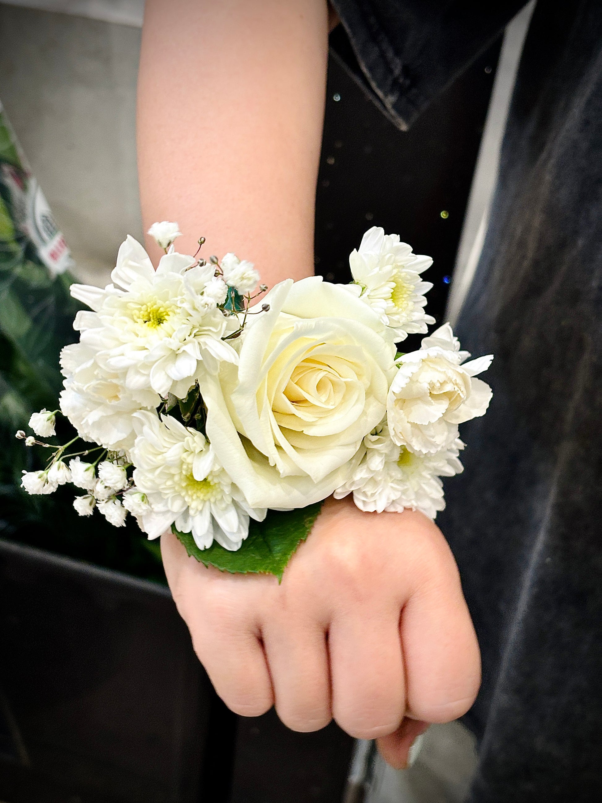 Add a touch of elegance to your special day with our Fresh Flower Wrist Corsage, designed to complement any wedding or formal occasion. Crafted with care, this beautiful corsage features handpicked, seasonal blooms that bring a pop of color and a delicate fragrance to your look.